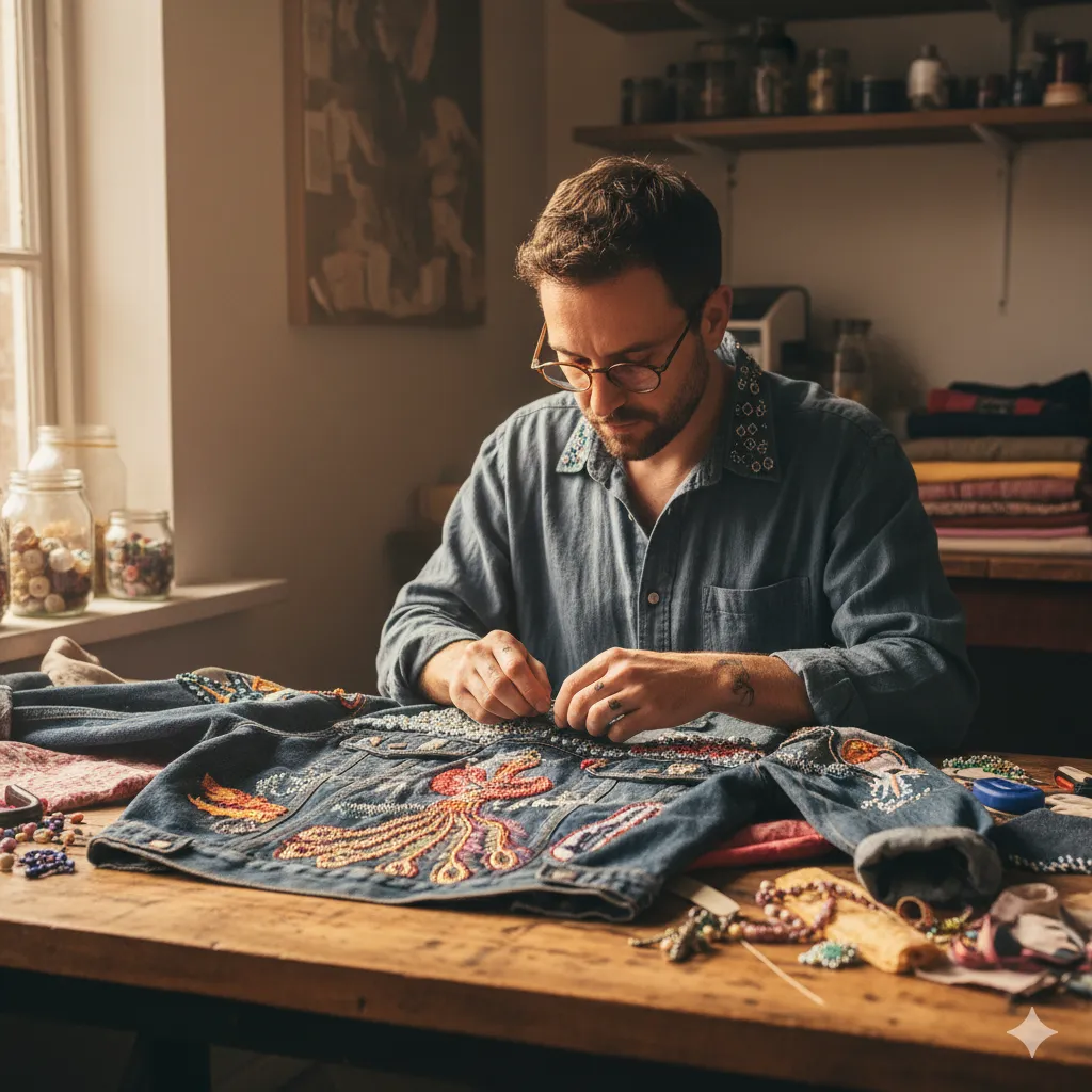 Marcus specialiserar sig på handgjorda broderier och applikationer med exceptionell precision.